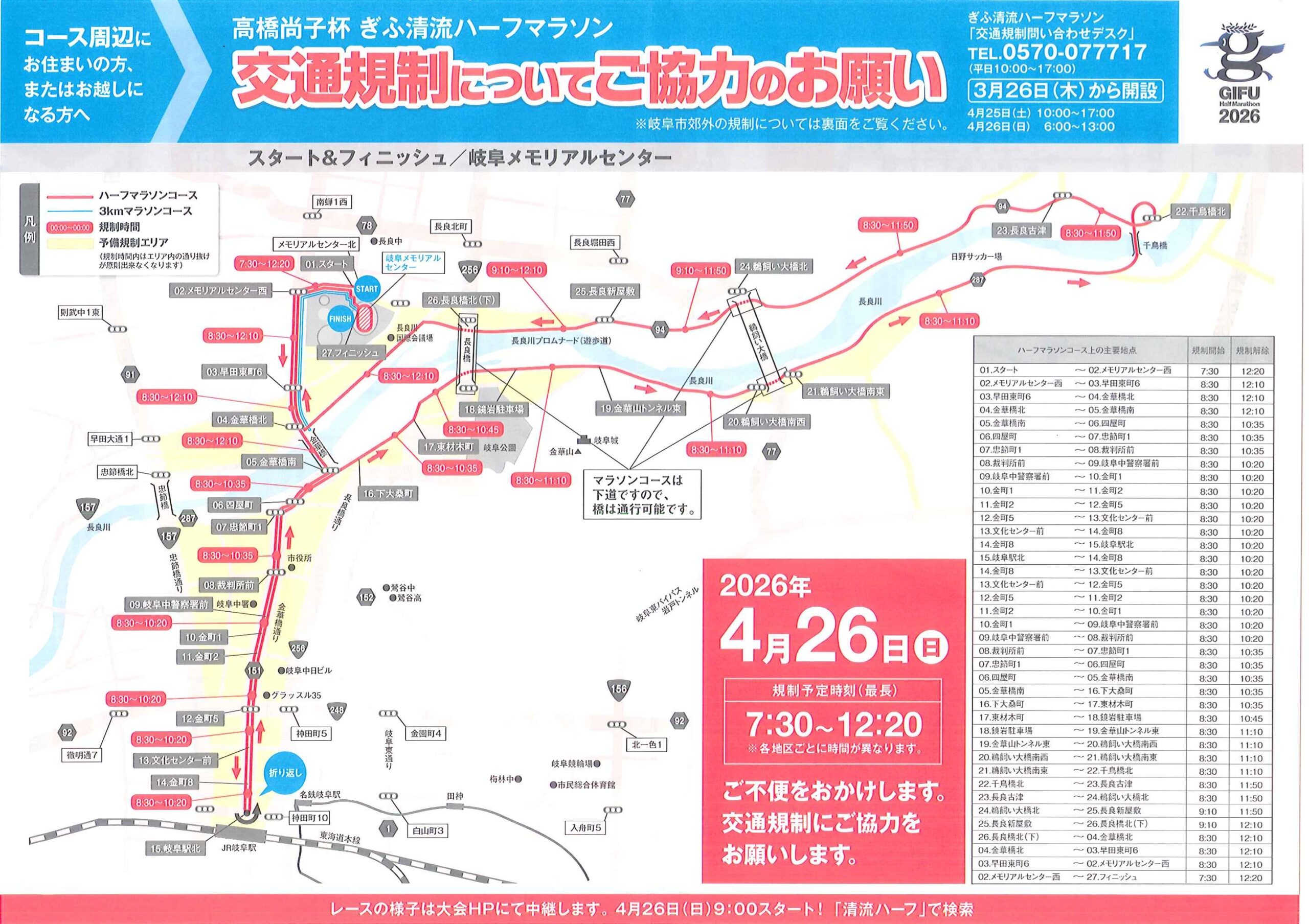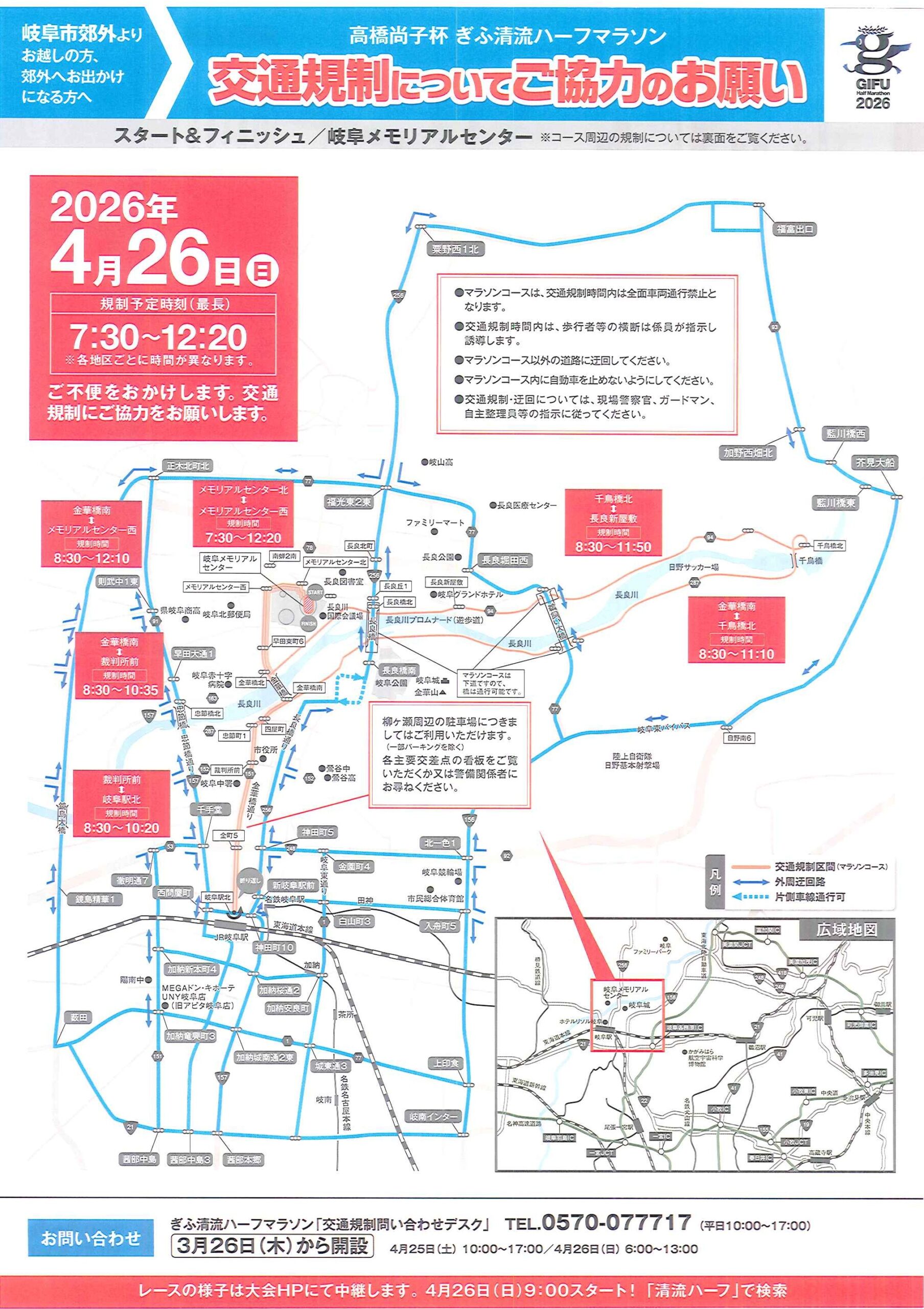 2026年4月26日の高橋尚子ぎふ清流ハーフマラソン開催に伴う交通規制について協力お願い案内がありました。